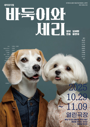 원작 ‘바둑이와 세리’는 2004년 영화진흥위원회 애니메이션 시나리오 최우수 당선작으로, 이번에 뮤지컬 작품으로 각색돼 선보인다. 김재환 드라마작가 원작, 영화감독 봉만대 연출, 연극계 베테랑 김정팔 총괄 프로듀서가 이번 공연을 위해 뭉쳤다.세 사람은 강아지의 눈으로 세상을 보고, 사랑의 본질을 묻는 ‘바둑이와 세리’의 매력과 재미에 동의했다. 그리고 ‘바둑이와 세리’를 동시대에 꼭 필요한 창작 뮤지컬로 자리매김하기 위해 의기투합했다. 이는 서로의 장르를 대표하는 세 창작자 김재환, 봉만대, 김정팔이 ‘바둑이와 세리’에서 펼쳐낼 경