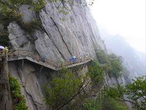 혹시 트레킹다운 트레킹을 하고 싶거든 꼭 화산 서봉에서 시작해 남-동-북봉으로 마무리하는 네 시간짜리 이 코스를 택하시라.명산이니만큼 화산에 서려진 일화도 많다. 당송팔대가 한유가 객기를 부리며 올랐지만 내려올 땐 오금이 저려 옴짝달싹 못 했다는 창룡령은 화산 서봉의 줄기에 속한다.절박한 상황을 편지로 써서 천 길 낭떠러지 아래로 던졌다고 전해지는 그곳에 한퇴지 투서처(韓退之 投書處)라는 글씨가 선명하다.김용의 무협소설 ‘영웅문’, 영화 ‘동방불패’에 등장하는 화산파 등 무림의 고수들이 힘을 겨룬다는 화산 논검 비(김용 글씨)도 포