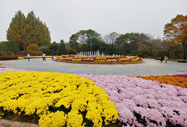 깊어가는 강원도의 가을이 국화로 물들었다. 강원도립화목원(강원도 춘천시) 국화전시가 24일 막을 내렸다. 형형색색 아름다움을 뽐내는 국화들이 전시의 피날레를 장식하고 있다. (사진=오상민 기자)